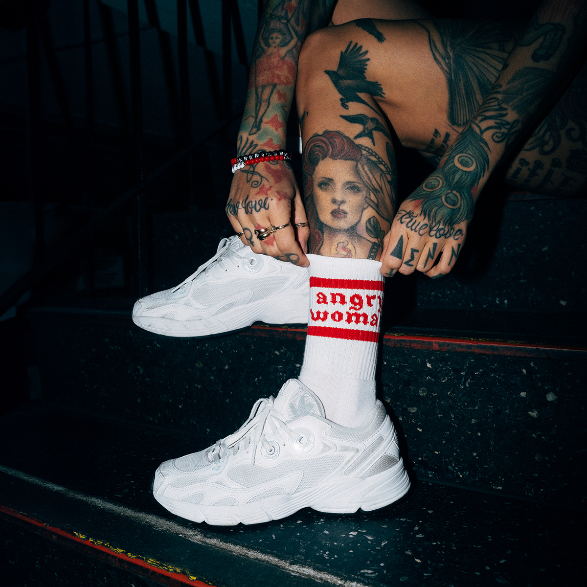 Related links to "Tennissocken - "angry woman", weiß-rot"
